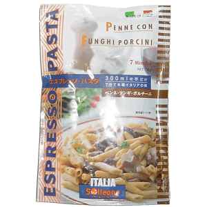 ●原材料:デュラム小麦のセモリナ、植物油、食塩、乳糖、キノコ、チーズ、香料、調味料(アミノ酸)、香草 【エスプレッソ・パスタ】 本格的なイタリアの味はお手軽に。